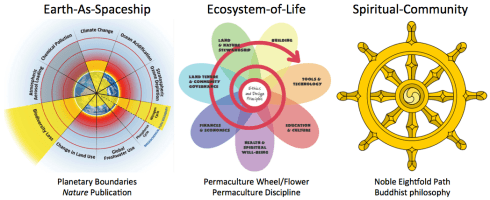 Permaculture is an area of research that takes a dynamic-systems perspective at sustainable living. The system encompasses ethics and design principles, Health & Spiritual Well-being, Finances & Economics, Resource Governance & Stewardship, Building, Technology, Education and Culture.