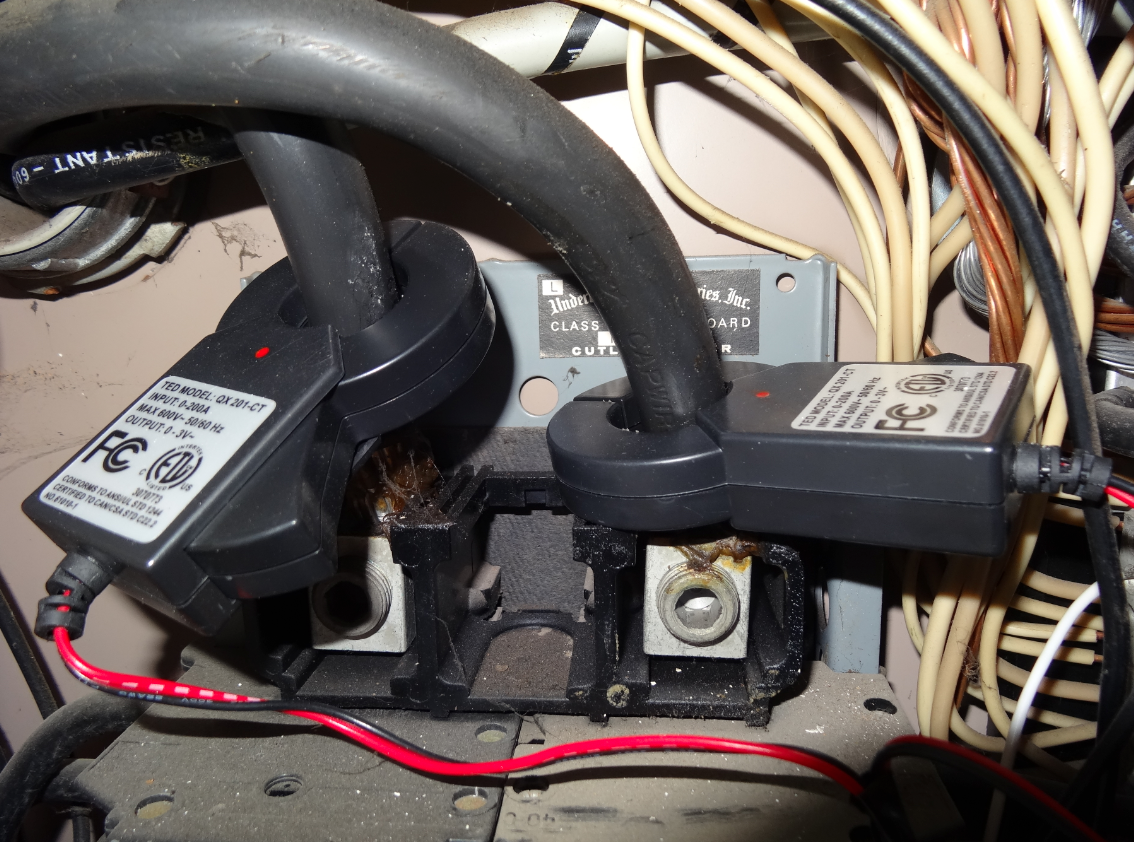 • The MTU has clamp-on ammeters which go on both phases of your mains cables going into the switch box