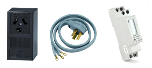 • Get a Dryer cable (there are differrent models, older 3-prong and newer 4-prong plugs with separate ground and neutral connections. I got the type of cable I needed). Example